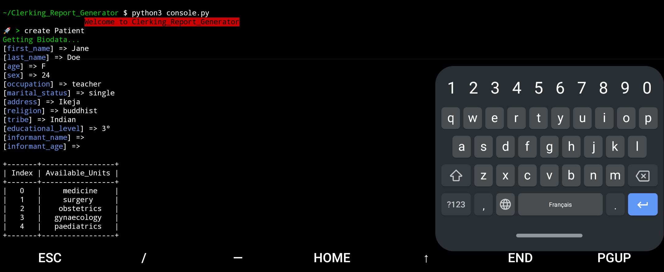 -cflag:python3 console.py -c "create Patient" -